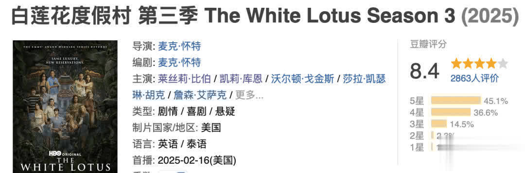 固然,《白莲花度假村》最勾引东说念主的地点照旧在于它的群像戏,而每一季起头的物化悬念更是吊足了不雅众胃口...
