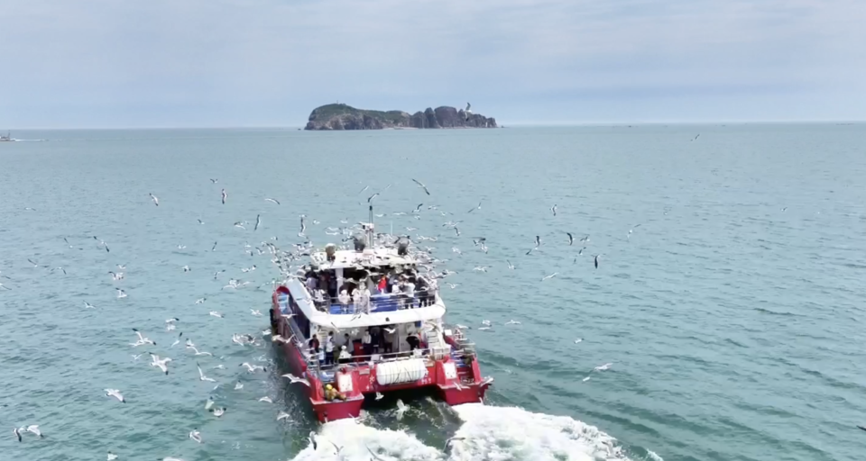 乘船环绕海驴岛参不雅,就不错近距离与这些海鸥互动,漫天的海鸥跟班游览船鸾歌凤舞,孩子们欢喜肠用食物喂海鸥,风物十分壮不雅和谐。李敦厚女儿说:“这些海鸥少许也不怕东说念主,追着我们好像在跟我们嬉戏,依次过来扮演遨游特技当作,远不雅海驴岛重重叠叠、造型生动,别有风味,令东说念主全神关注。”唾手一拍,数只海鸥便能同框,稳坐C位,灵动的神情不由获得繁密游客宠爱,成为这迥殊的海岛欢乐上浓墨重彩的一笔。