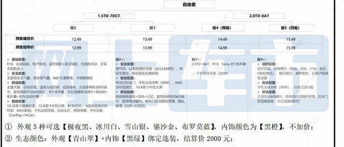 疑似捷途里面文献透露,解放者共4款车型,预售开导价12.99万-15.99万,提供2驱与4驱。青山翠外不雅+黑绿内饰绑定选装,价值2000元。销售暗示,新车现已到店,可提车。