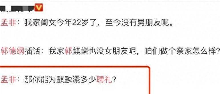 孟非和郭德纲坐在那处交谈,当话题转到男儿成婚时,腻烦陡然活跃起来。