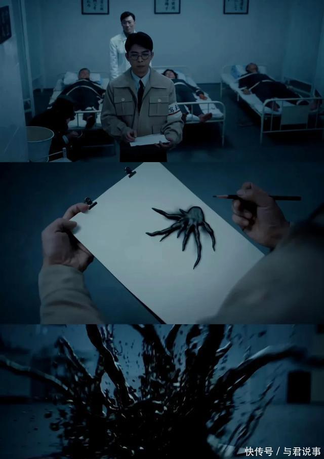 还有章宇饰演的日本画师荒川良平,在良知与死守之间的抗争计议了前几集。他被叫去画图东说念主体推行图时,看到中国子民被绑在推行床上,脚上的冻疮驰魂宕魄,他忍不断止指恐慌、额头冒盗汗,连吞咽涎水的微看成都在诉说内心的扯破,绘画时画本上蓦然炸开的玄色病毒“魔爪”,恰是他内心怯生生的外化。