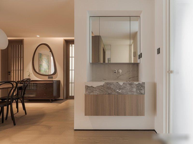 但上海这户东谈主家的操作,险些把“窘态”改成了“智谋”!你看东谈主家怎样玩的:刚好愚弄正本墙凹进去的场地,作念了个L型木质玄关柜——一边是到顶的白色柜子塞鞋和包包,一边藏了个折叠换鞋凳!要换鞋就拉出来坐,毋庸就推且归,比那种占场地的固定凳子灵多了!更绝的是大地——玄关铺米白色大岩板,和内部的木地板差5公分高下差,灰尘从外面带进来奏凯被挡住,毋庸天天蹲在门口擦地板,这细节比“网红地垫”实用一百倍!
