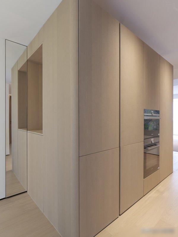还有啊,当今年青东谈主谁不心爱“镶嵌式”?东谈主家奏凯把雪柜、蒸烤箱塞进玄关柜里,散热孔开在玄关那面——既不挤厨房,餐厅也看不见前俯后合的电器,女业主偶尔烘焙,奏凯在玄关柜这里拿蒸烤箱,比挤在厨房台面上风物多了!你说是不是比把电器堆在厨房“摆地摊”整皆?