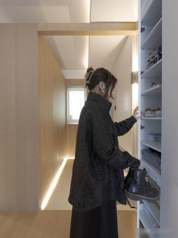 泡杯咖啡、煮杯茶,毋庸跑厨房,储物间塞行李箱、换季穿着,家里倏地清澈;主卫隔墙内移作念了衣帽间,女生的穿着包包终于有场地放了,再也毋庸堆在卧室椅子上!