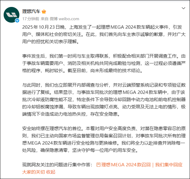 2025年10月23日晚,上海发生了通盘期望MEGA2024款车辆生气事件,激勉用户、媒体和社会的密切关注。在此,咱们当先向车主暗示竭诚的歉意,并对宏大用户的担忧和顺心暗示知晓。